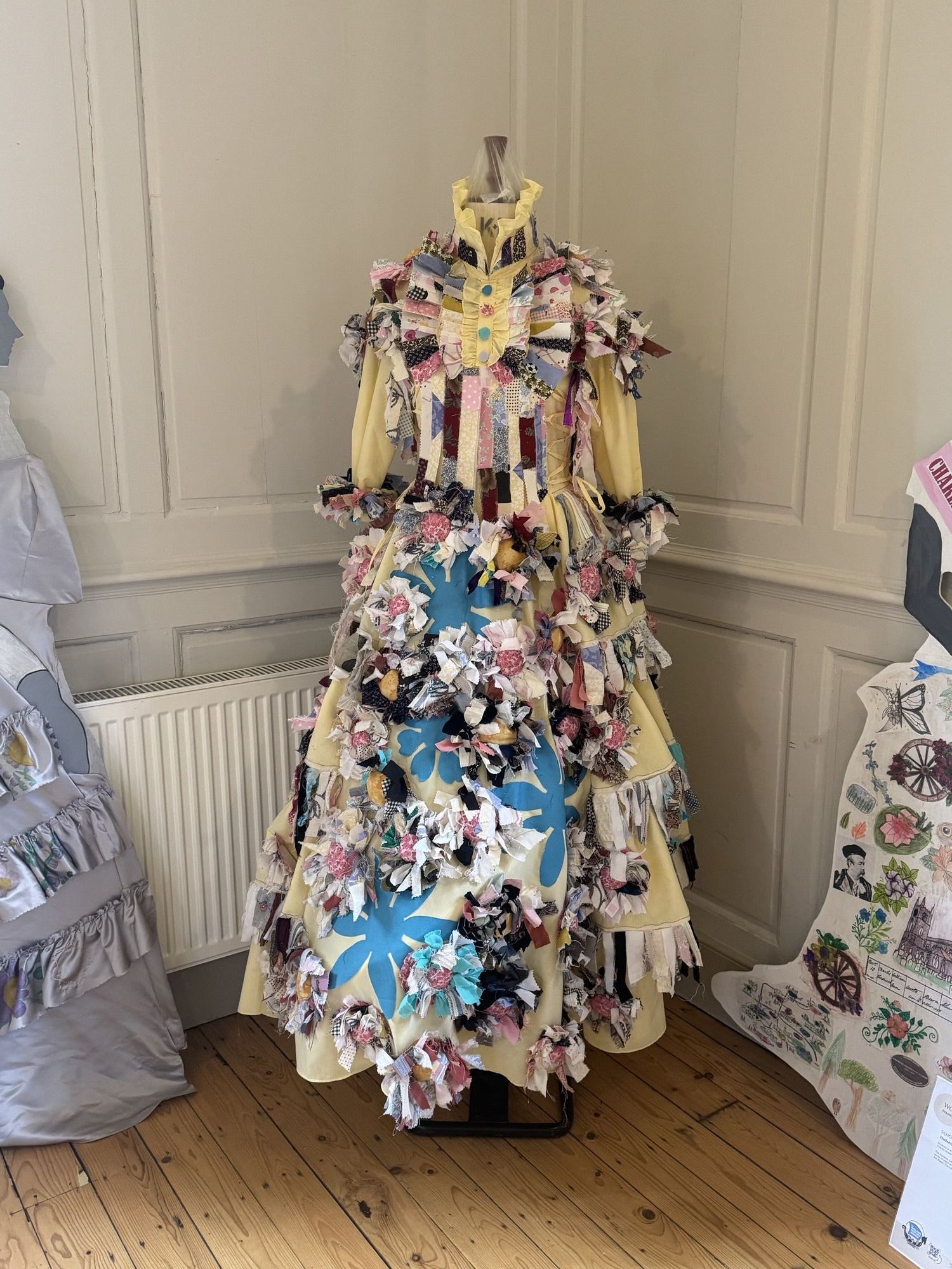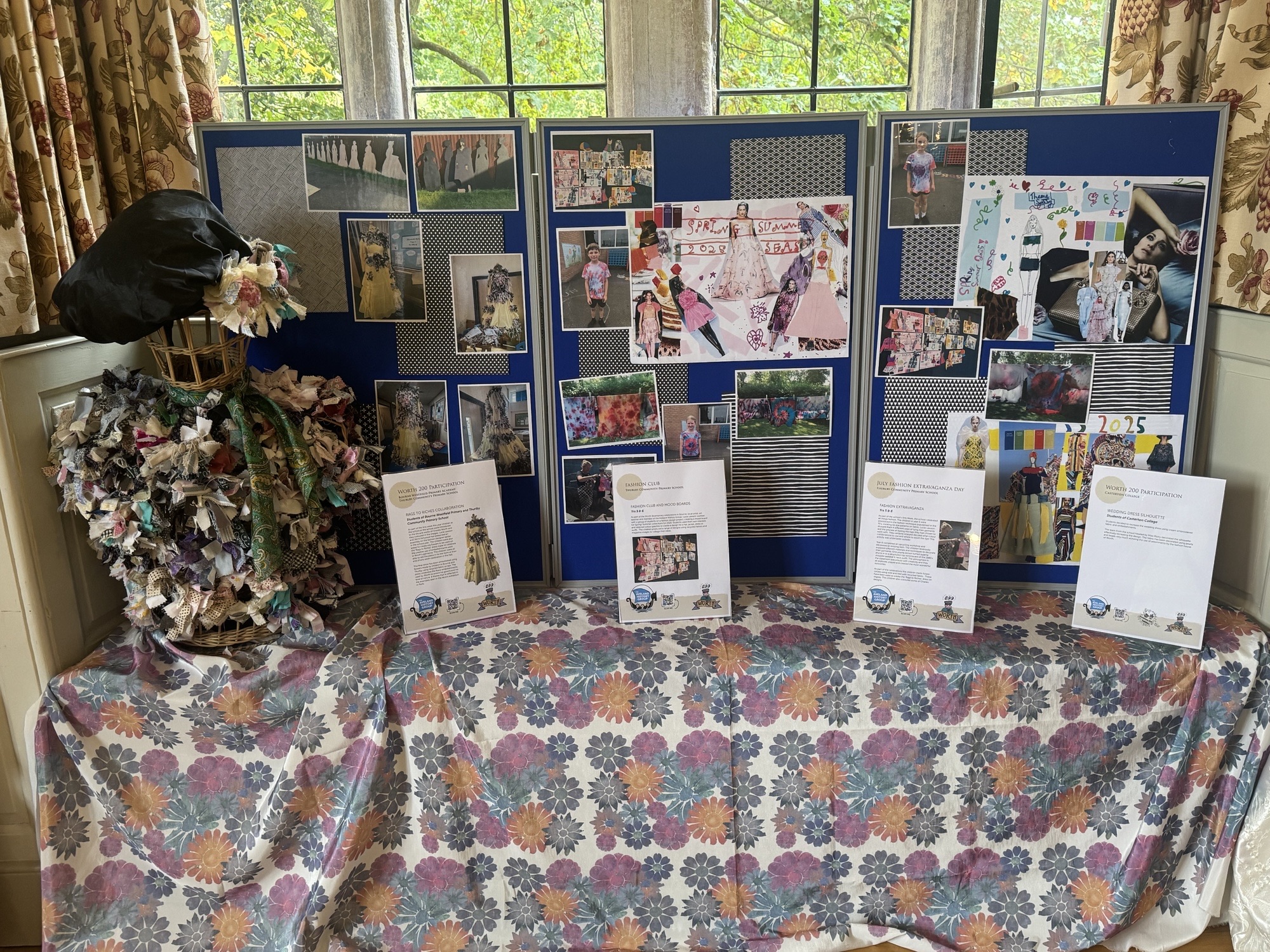 Children from Thurlby Academy and Bourne Westfield Primary Academy created rag flowers using recycled fabric scraps which were then added to the ‘Rags to Riches’ dress below. This was to celebrate the creative use of embellishments used in Worth’s garments and his love of nature.