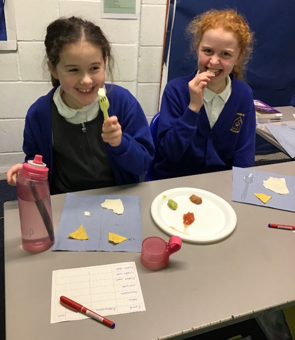 As part of our Mayan topic, the Y5 children tried some Mexican foods during their DT lesson. We evaluated them by looking at the colours and textures, smelling them and finally tasting them. The foods sampled were guacamole, salsa, refried beans, tortilla chips and flour tortillas. Although many of the children had not eaten all these foods before, they were still keen to try them. Well done Y5!